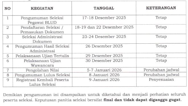 “Penyesuaian jadwal ini dilakukan sebagai bagian dari upaya menjaga kualitas serta akuntabilitas hasil seleksi,” jelas dr. Ardiansyah.